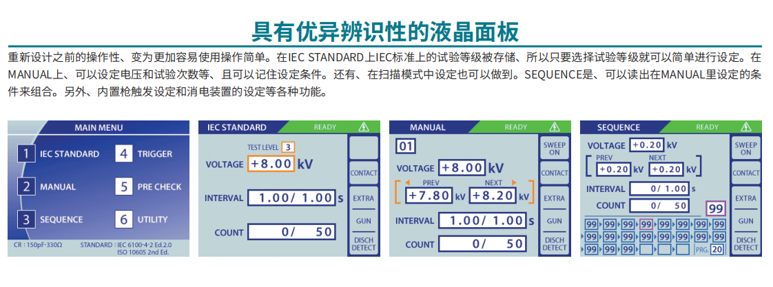 (软件可免费下载,另外本放电枪的C (电容) 和R (电阻) 是CR一体型。购入选件可做ISO 10605 试验)